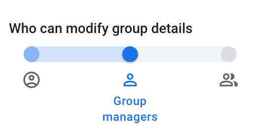 La nueva configuración: “¿Quién puede modificar los detalles del grupo?” |