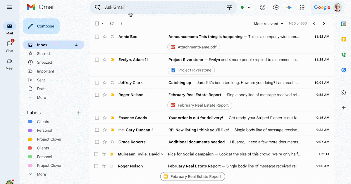 En la barra de búsqueda de Gmail, escriba preguntas como:
