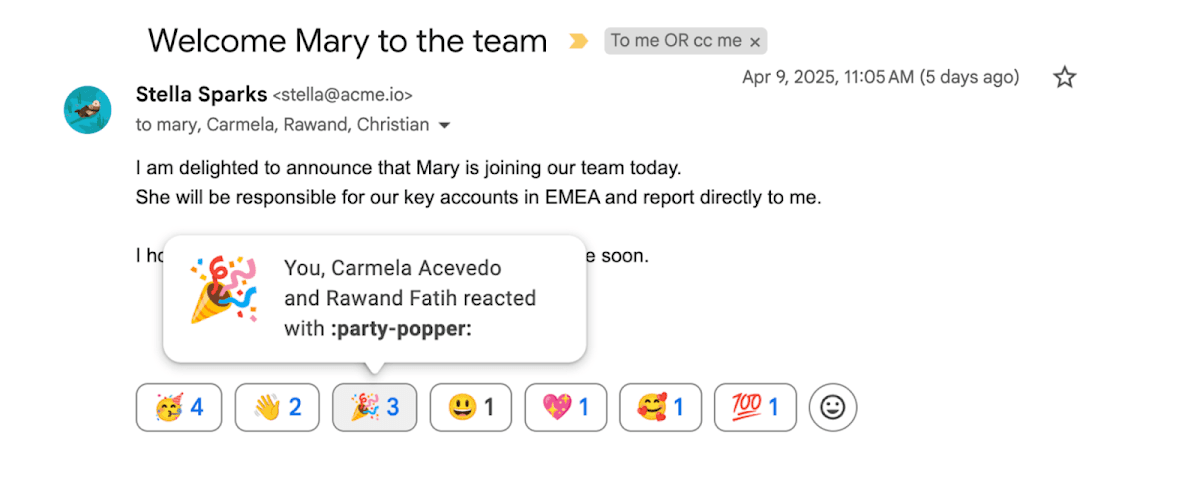 Las reacciones de emojis en Gmail ahora estarán activadas de forma predeterminada
