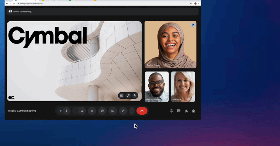 Esta actualización ofrece a los espectadores más flexibilidad a la hora de ver el contenido durante una reunión. Al desacoplar el contenido compartido en pantalla (ya sea una presentación, una hoja de cálculo o un documento), puede moverlo a una pantalla secundaria o cambiar su tamaño de forma independiente. Esto hace que sea más fácil ver simultáneamente el contenido compartido en pantalla y los participantes en la videoconferencia, lo que le ayuda a mantenerse conectado y colaborar más fácilmente.